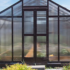 Длина базовой теплицы - 4,0 м., в комплекте: двойная дверь-купе и две форточки в крыше.